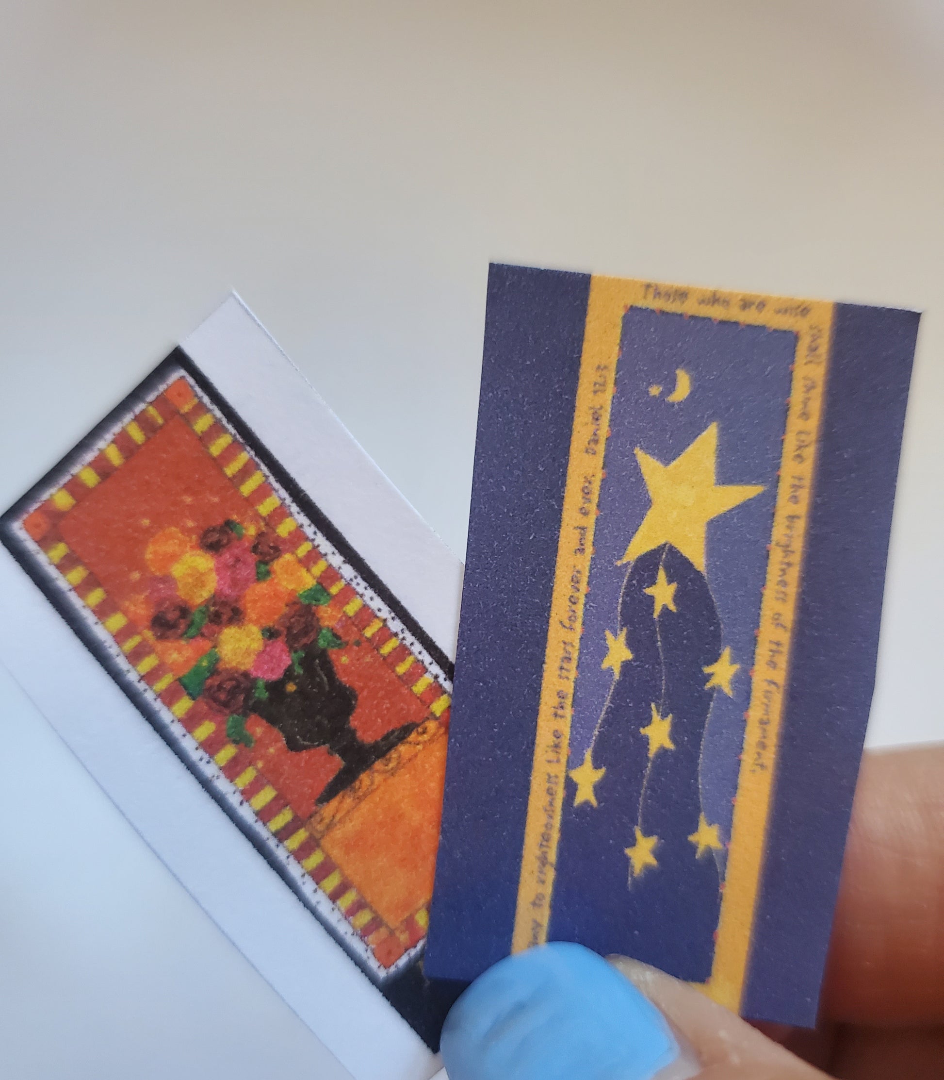 Our mini0bookmarks measure 1.7 inches by 1 inch.