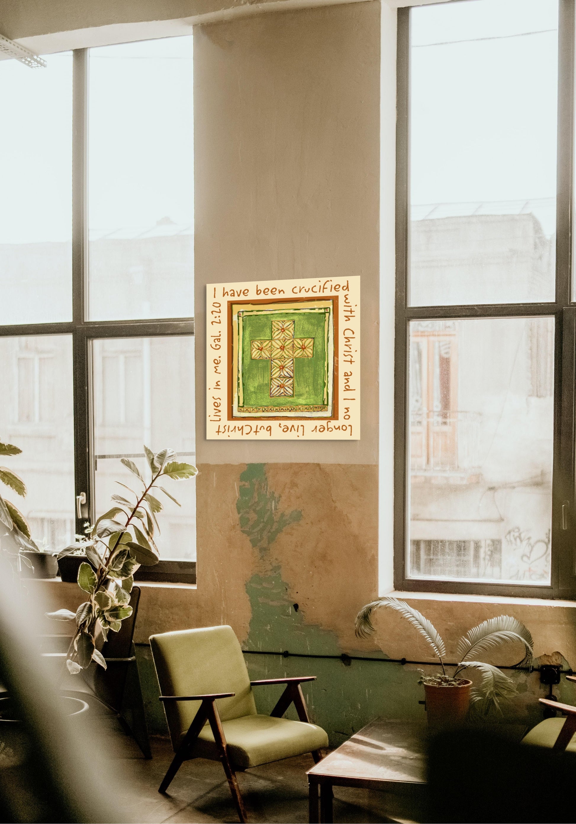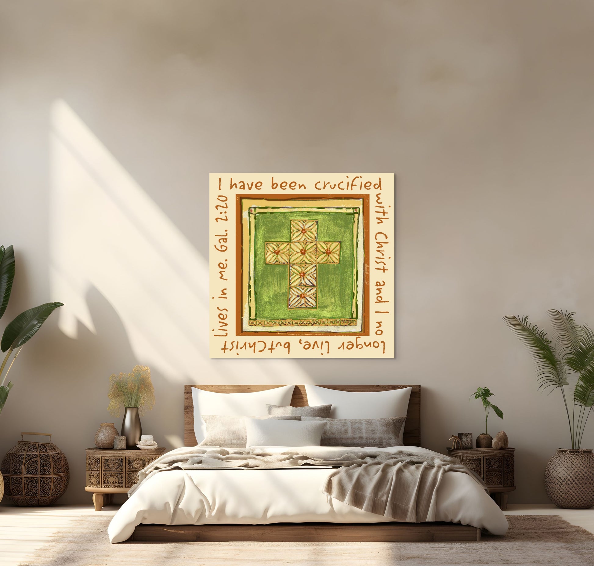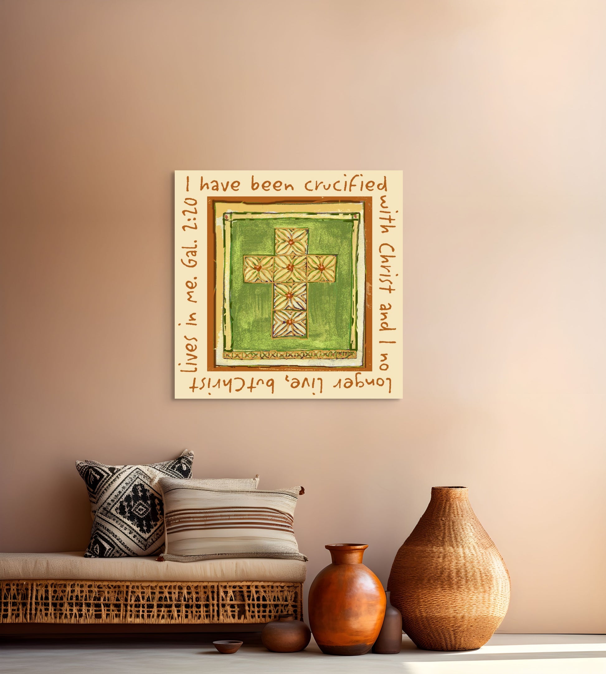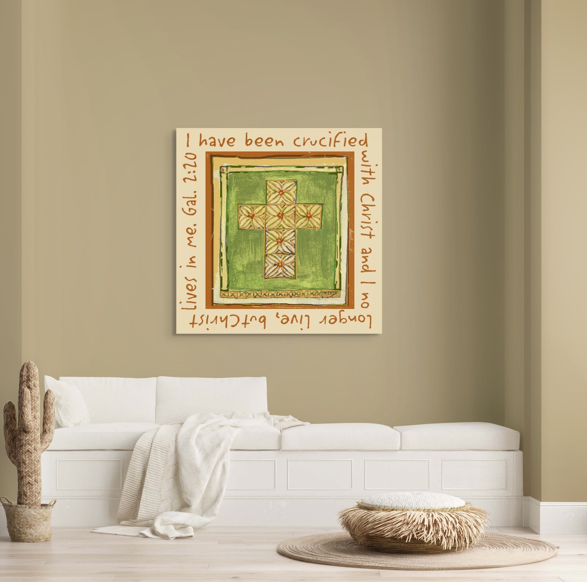 This canvas print features the powerful words of Galatians 2:20: “I have been crucified with Christ and I no longer live, but Christ lives in me.” Designed to inspire daily surrender and faith, it serves as a beautiful reminder that our lives are fully anchored in Christ—His life, His strength, and His love living within us.